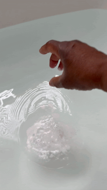 Start with a warm soak. Our bath bomb gently softens and preps your skin.